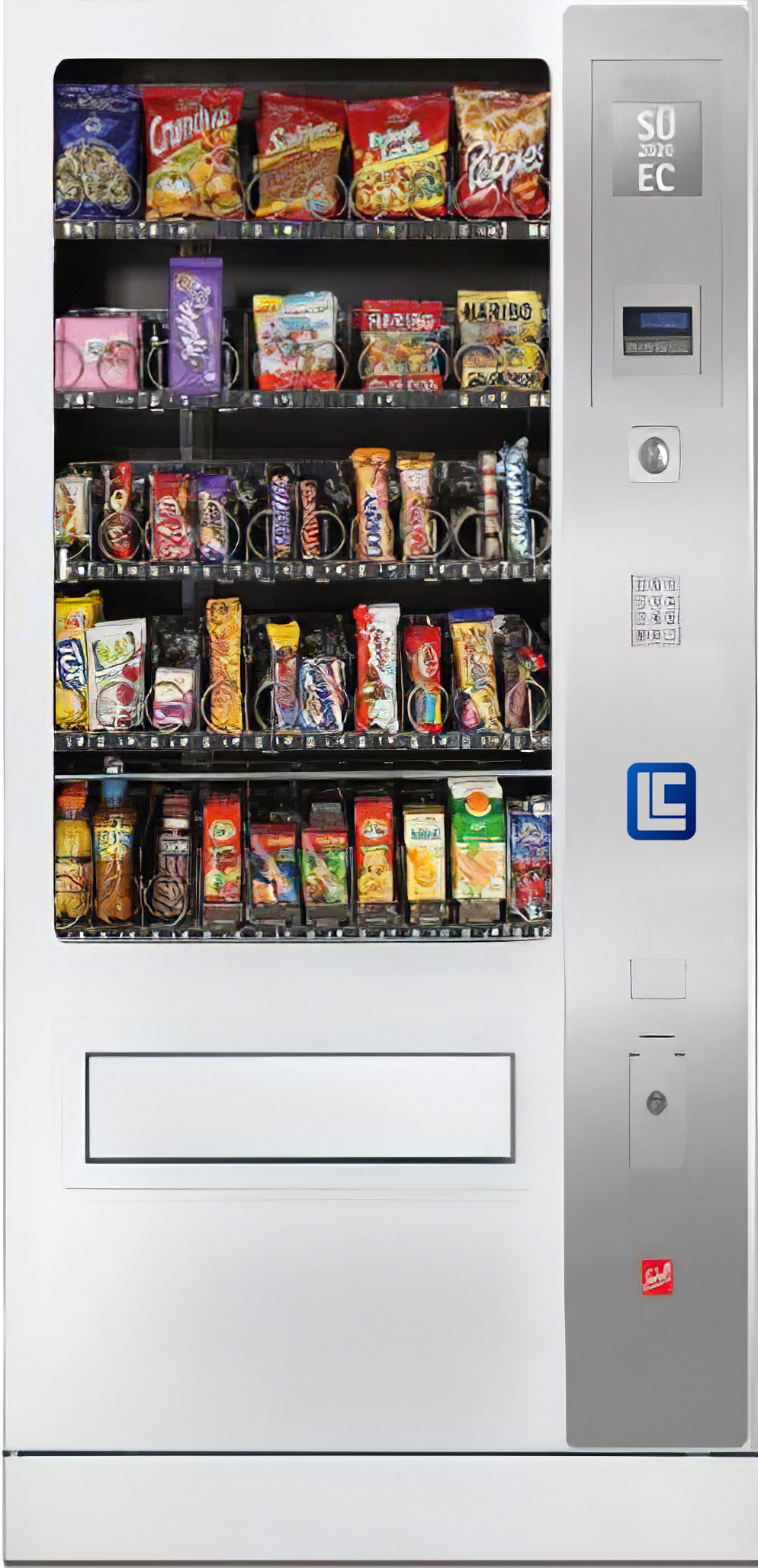 A combination type of machine that offers a wide selection of food products such as chips, juices, chocolates, bakeries, canned drinks and many more. Has an electronically controlled refrigeration that keeps foods fresh and ready for consumption all the time.